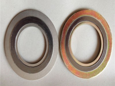 | 内环一般采用和缠绕钢带相同材料符合管道介质耐腐蚀要求通常优于管道或法兰的材料, 根据标准要求先将金属缠绕带固定在内环上然后用金属缠绕带与石墨、石棉、聚四氟乙烯、无石棉等非金属缠绕带不断相互交替重迭螺旋缠绕而成,在末端用点焊方式将金属带固定。内环又叫加强环以避免缠绕垫片的散圈。 性能特点:带内环金属缠绕垫片利用内环的控制使垫片得到最大压紧度,缠绕垫片接触的法兰密封面的表面精度要求不高。金属缠绕垫片特别适用于负荷不均匀、接合力易松弛,温度与压力周期性变化、有冲击或震动的场合。般用在中低压的榫槽面和平面或凹凸面的法兰中 使用设备:石油、化工、冶金、电力、船舶、机械等行业的管道、阀门、压力容器、冷凝器、换热器、塔、人孔、手孔等法兰连接处密封 。 |