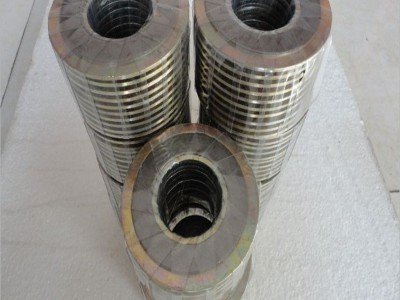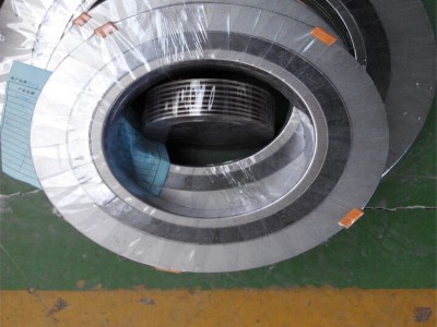 | 金属缠绕垫片采用优质SUS304、SUS316(“V”形或“W”形) 金属带及其它合金材料与石墨、石棉、聚四氟乙烯、无石棉等软性材料相互交替重迭螺旋缠绕而成,在开始及末端用点焊方式将金属带固定。金属缠绕垫片为半金属密合垫中回弹性最佳的垫片,金属缠绕垫片结构密度可依据不同的锁紧力要求来制作,并利用内外钢环来控制其最大压紧度,缠绕垫片接触的法兰密封面的表面精度要求不高。金属缠绕垫片特别适用于负荷不均匀、接合力易松弛,温度与压力周期性变化、有冲击或震动的场合。缠绕垫片是阀门、泵、换热器、塔、人孔、手孔等法兰连接处理想的静密封原件缠绕垫片应用范围:石油、化工、冶金、电力、船舶、机械等行业的管道、阀门、压力容器、冷凝器、换热器、塔、人孔、手孔等法兰连接处密封。